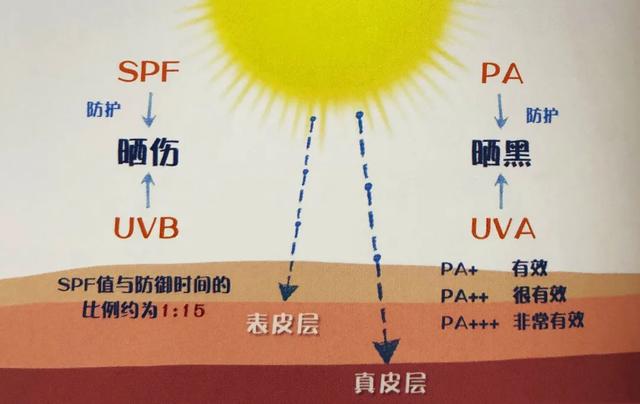 选择防晒霜,主要看两大标识。其中,SPF对付中波紫外线UVB,保护你不被晒伤。而PA对付长波紫外线UVA,+号越多,表示防晒黑的能力越强。